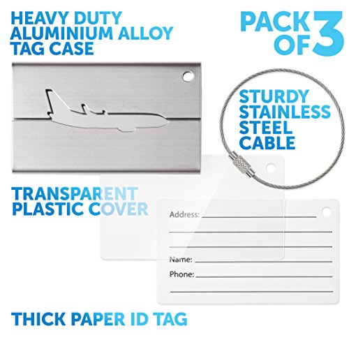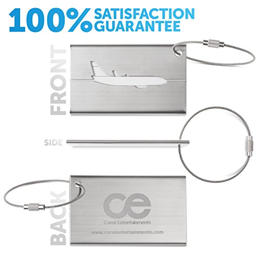 -. Feature : SUPER PACK KIT AND 1 YEAR WARRANTY - 3 Lage Tags + 3 Steel Cable, Include A Bonus File That Matches The Paper In The Tag For New P.R.Inting If You Want Your Own Styling. Reusable. / P.R.IME QUALITY AND STAINLESS STEEL SUPER DURABLE METAL TRAVEL TAGS - Coral Entertainments Do The Best To Deliver Premium Quality. The Tags Made From Hard Metal. Can Be Used All Over The World With Any Bag Or Lage. / SUPER HARD STEEL CABLE TAGS - Thieves Target Airports To Know Who Is Away From Home. With Our Tags Your Info Will Not Be Shown To All. Strong Cable That Can Be Open/close For Reuse. The Id Will Not Fall Off, So You Can Relax, Your Lage Will Be Easy To Spot. / WORK WITH ANY LAGE YOU HAVE - You Don't Have To Fly To Use It. You Can Mark Your Everyday Bags, Keys, Baby Strollers, Briefcases And Anything That Has Hole In It. With The Bonus, You Can P.R.Int Anything You Want On The Paper And Use It Within Minutes. / UNIQUE SHAPE AND STYLE - With The Shining Metal And Airplane Shape, Your Lage Will Be Spotted At First Sight. Your Info Is Not Visible To People On Look, Your Safety Is Number 1 P.R.Iority.