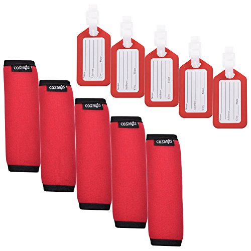 -. Binding : Kitchen -. Brand : Cosmos -. Feature : Packaged included: 5 pcs handle wraps + 5 pcs travel lage tags / Handle wraps help to adds a layer of comfort to your handle, fit any lage handle / Assorted color lage tags provide you more choices, easily to identify your lage from others / Lage tags size: 3.3" x 1.8"; Handle wrap size (Open): 5.5" x 5.3", Roll 5.5"x1.7" -. Label : Cosmos -. Manufacturer : Cosmos -. ProductGroup : Home -. ProductTypeName : HOME -. Publisher : Cosmos -. Studio : Cosmos -. Title : Cosmos ® Comfort Neoprene Handle Wraps/Grip / Identifier for Travel Bag Lage Suitcase + Travel Accessories Lage Tag Identifier