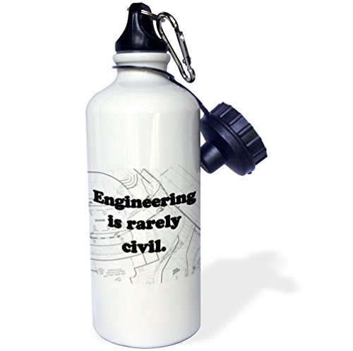 3dRose wb_149859_1 Engineering Is Rarely Civil Sports Water Bottle, 21 oz, White