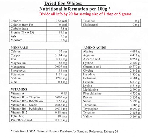 1 lb (16oz) Dried Egg Whites (Non-GMO, Pasteurized, Made in USA, 1 Ingredient no additives, Produced from the Freshest of Eggs)