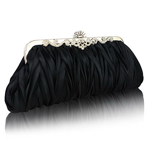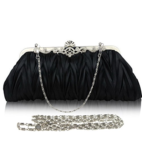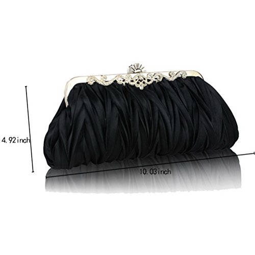 -. Brand : Fashion road -. Department : womens -. Feature : 100% brand new and high quality / You'll be the party girl with the right accessory! / Purse features a cinched satin design with silver rhinestone adorned trimming for high-class sass! / Came with two removalbe silver shoulder chain for your choice to take it in hand in or on the shoulder. / Purse Measurement is approximately: 10.03*4.92(inch); Weight:5.54(oz) -. ProductGroup : Shoes -. ProductTypeName : HANDBAG -. Title : Fashion Road Womens Satin Pleated Evening Clutch Bags Purse Wedding Cocktail Party Handbags