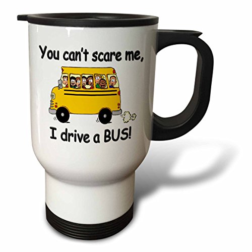 You cant scare me I drive a bus. Bus Driver. School Bus Driver. Travel Mug is a great way to take your favorite hot or cold drink along. With a tapered bottom this stylish 14oz mug fits in a standard cup holder and features an easy-grip handle with thumb rest, slide opening lid and slanted drinking surface. This travel mug is made of stainless steel. Not microwave safe, hand washing is recommended.Feature