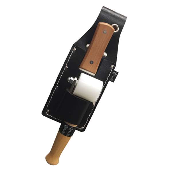 ●上部はスクレーパーや皮スキ等を収納でき、下部にはローラーやハケなどを収納可能な黒革工具差しです。