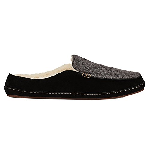 -. Feature : These great slide on house shoes by Olukai feature a nubuck leather upper, genuine sheepskin lining, versatile drop-in heel, embroidered logos and hand sewn moccasin toe / 20341 / Nubuck leather upper / Removable EverFit contoured footbed with a merino wool blend cover / Non marking natural gum rubber with buffed finish and laser etched logo