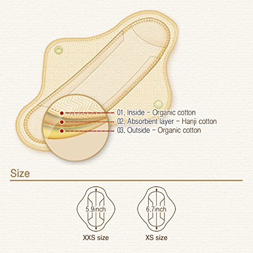 A daily liner that protects my precious child during pregnancy. It's a daily liner that can be used both for mothers and ordinary women. Great product for women who worries about large amount of secretion in daily lives. A product that can be used daily without any skin troubles and uncomfortableness. Feel the softness of 100% organic cotton. No need to worry about being seen through clothes for its mini size. (Length : 5.9 in, Thickness : 0.07 in) Neat finish with organic fabric's bias. Adjust the liner to narrow underwear with its 2 buttons. It's portable than cotton sanitary pad and can be used as normal underwear for it's easy to wash and dry. Instead of nickel, special YK snap is used for buttons to prevent the rust or environmental materials. It's recommended to be used at the end of period for it doesn't have waterproof cloth. 0