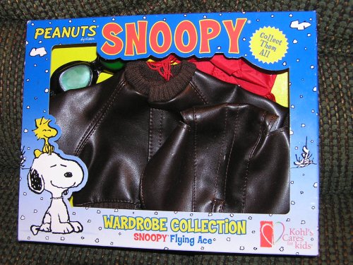 -. Binding : Toy -. Brand : Kohl's Snoopy -. Feature : Snoopy Flying Ace Pilot Outfit from Kohl's Snoopy Wardrobe collection / made for the Plush Snoopy Doll Kohl's sold a couple of years ago / Includes hat, goggles, scarf and jacket / these outfits are no longer made / Outfit only. Snoopy is NOT included. -. IsAdultProduct : 0 -. Label : Kohl's Snoopy -. Manufacturer : Kohl's Snoopy -. MPN : 9613481 -. PackageQuantity : 1 -. PartNumber : 9613481 -. ProductGroup : Toy -. ProductTypeName : TOYS_AND_GAMES -. Publisher : Kohl's Snoopy -. Studio : Kohl's Snoopy -. Title : Peanuts Snoopy Flying Ace Pilot Outfit For Plush Doll from Kohl's Wardrobe Collection by Kohl's Snoopy