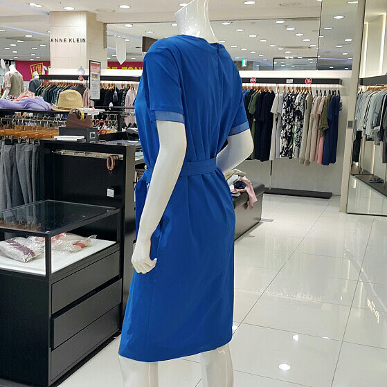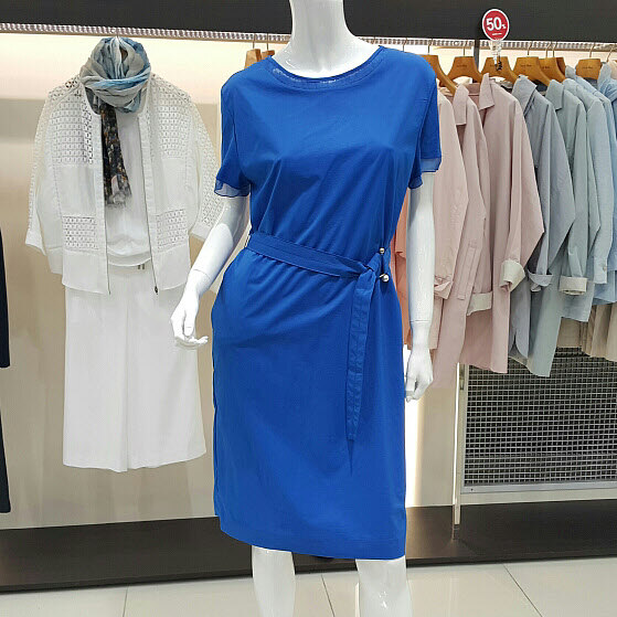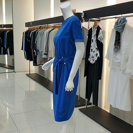 넥라인과 소매부분의 쉬폰으로 포인트를주어고급스러운 진주벨트로 신축성있으며가벼우며 여성스러운 스타일입니다