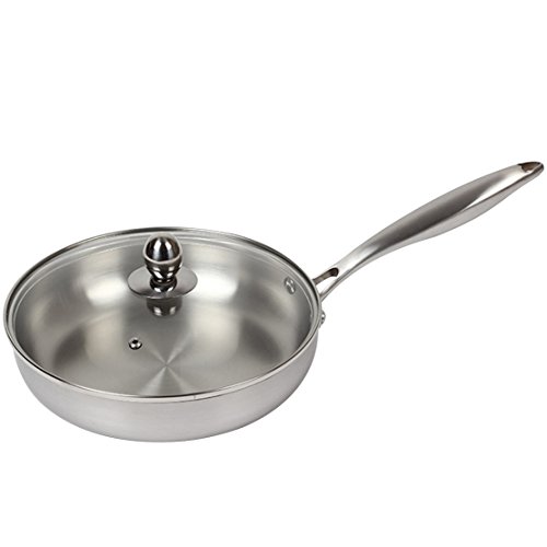 Designed and developed by a star chefs. This Chefs premium quality 304 Stainless Steel Fry Pan allows you to reach new culinary heights in cooking your favorite dishes. Premium cookware is built with high quality Stainless Steel which enables even and efficient heat distribution. This heavy and durable pan is non-reactive, keeping the flavors natural and tasty. It is perfect for frying, searing, and browning foods. Designed with high, straight sides and a smaller surface area, this pans holds heat well and limits evaporation.