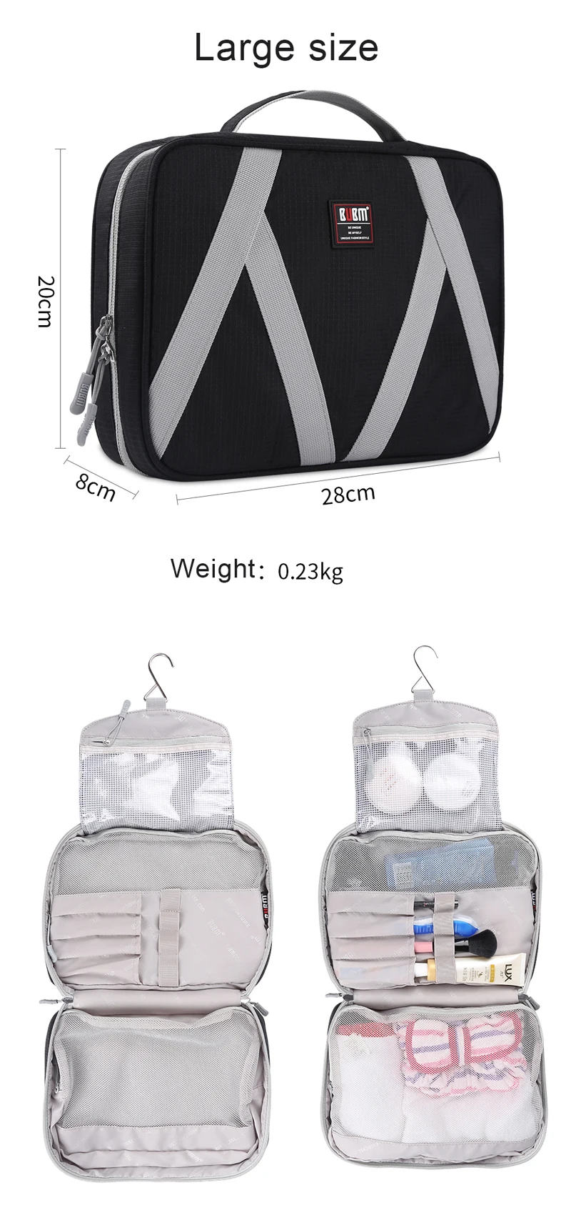 Our bag can be used as travel bag, makeup bag, healthcare bag and is a perfect choice to take on any business trip, outdoor activity or vacation.