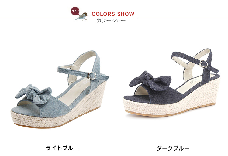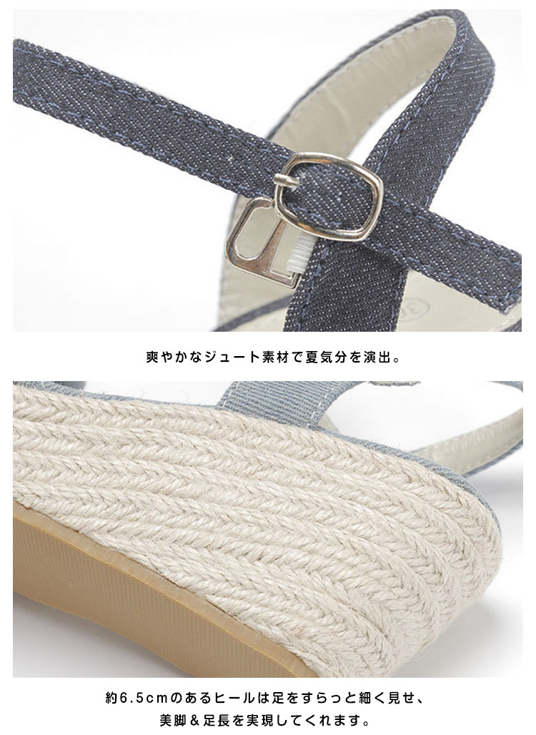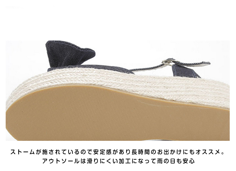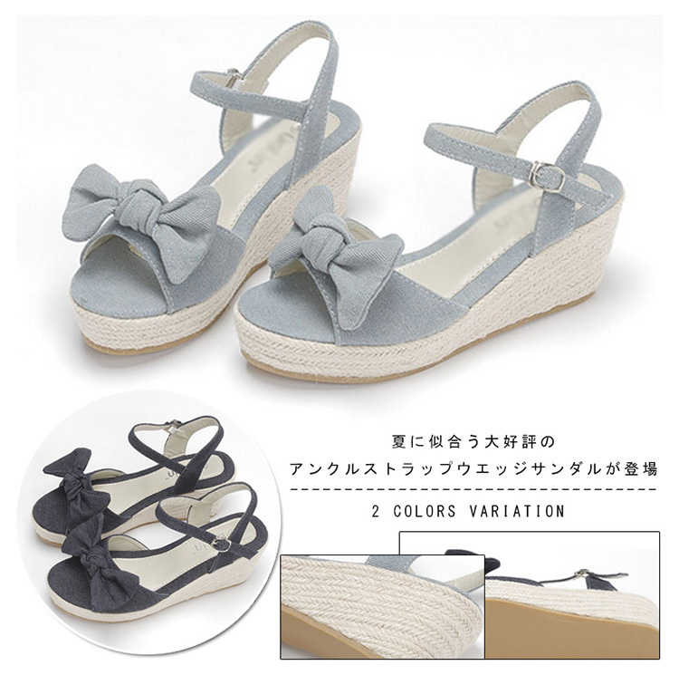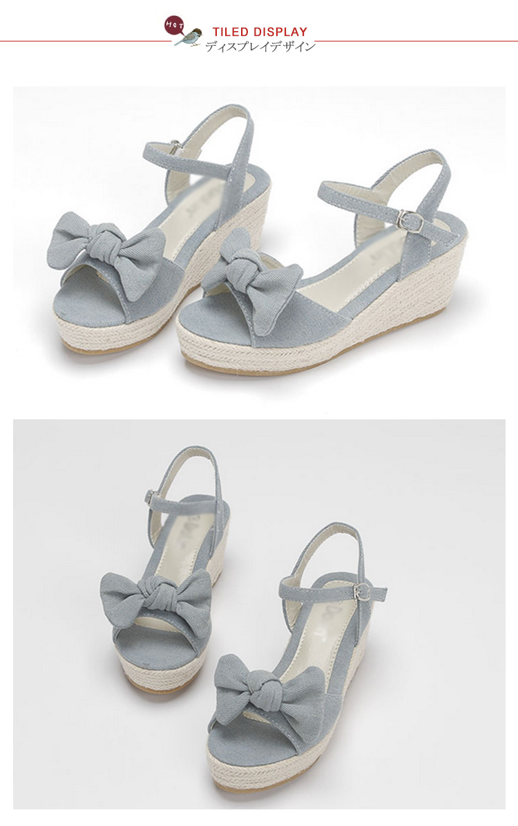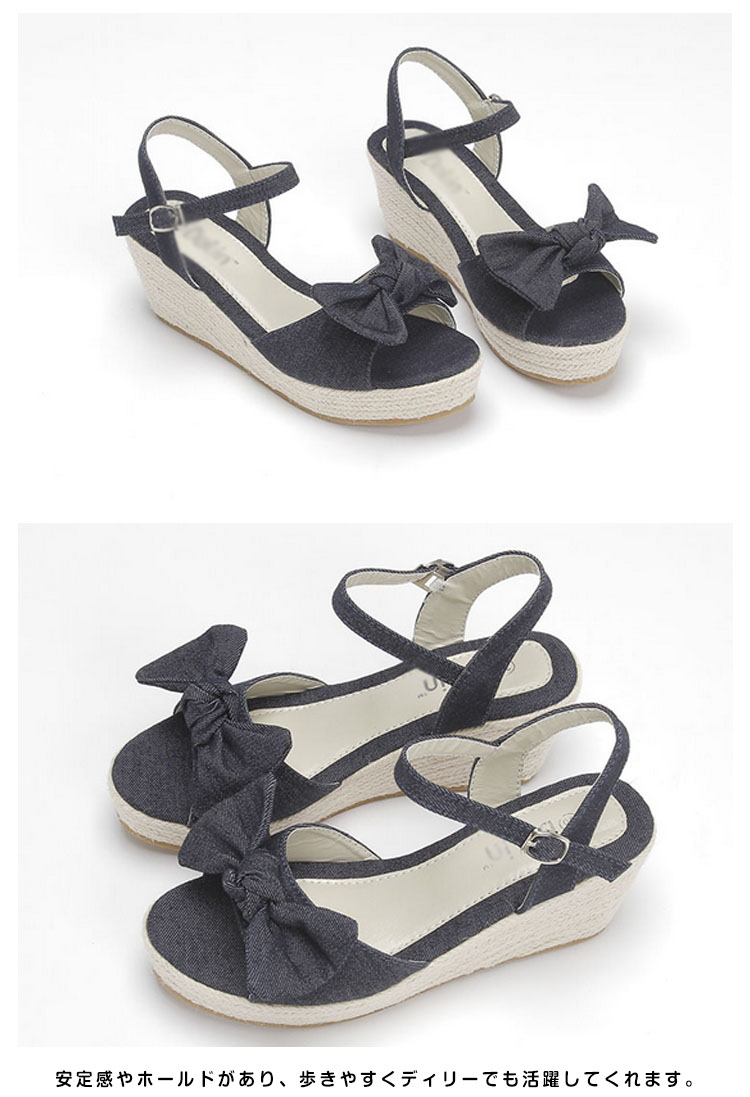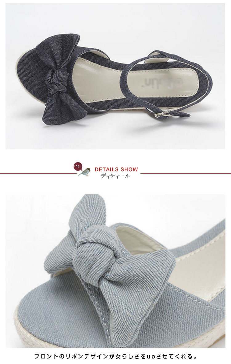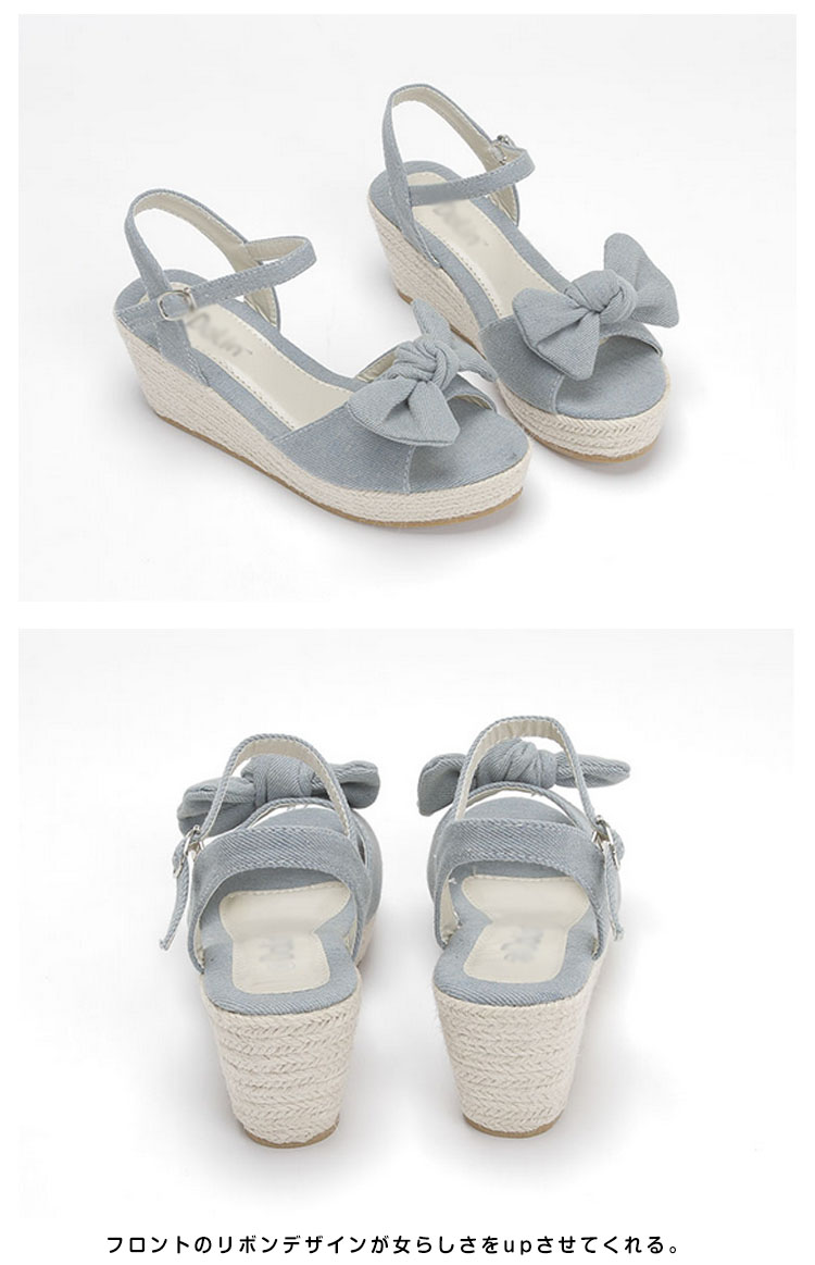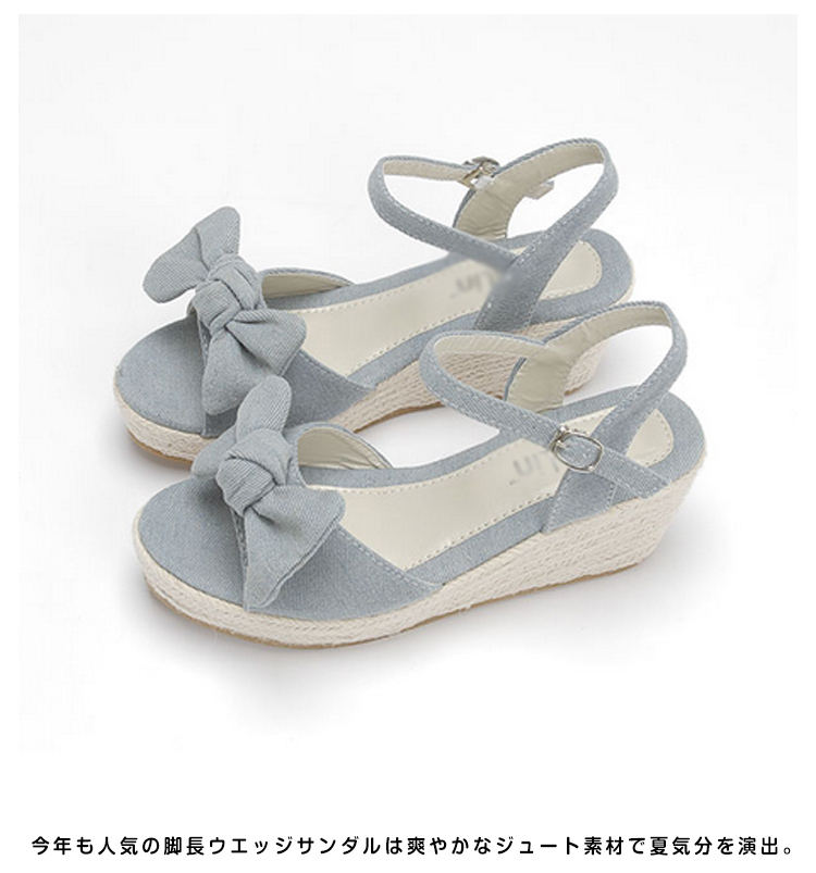 | 夏に似合う大好評のアンクルストラップウエッジサンダルが登場。今年も人気の脚長ウエッジサンダルは爽やかなジュート素材で夏気分を演出。フロントのリボンデザインが女らしさをupさせてくれる。安定感やホールドがあり、歩きやすくディリーでも活躍してくれます。 | |
