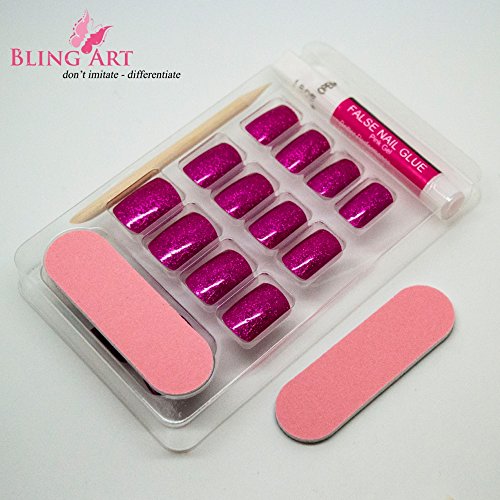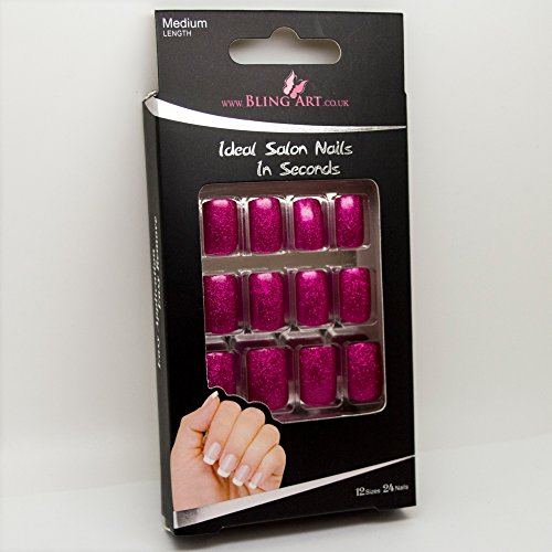 Bling Art False Nails French Manicure Magneta Gel Glitter Medium Tips UK