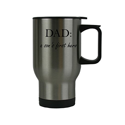 -. Feature : Dad: A Son's First Hero stainless steel travel coffee mug makes a classic gift for years to come. / Holds up to 14 oz of Liquid. / A GREAT GIFT FOR ANY OCCASION: Father's day, birthday, christmas / The design will never fade or fall off like other P.R.Inted products. / 100% Stainless Steel with Handle