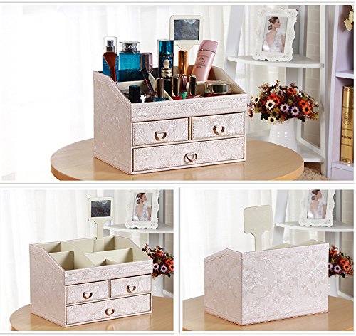 Arolly Fashion PU Leather Make Up Organizer Jewelry Cosmetic Desktop Storage Box Removable Collection Holder -Light Pink