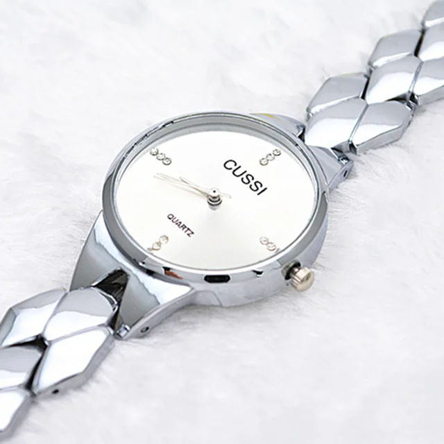 | [해외] CUSSI 패션 실버 팔찌 시계 럭셔리 크리스탈 시계 여성 시계 스테인레스 스틸 여성 시계 시계 relogio feminino |