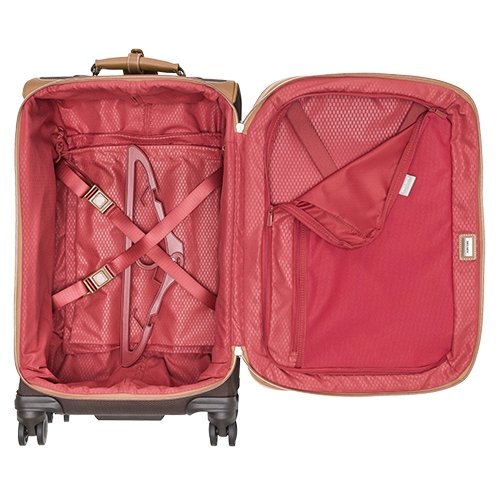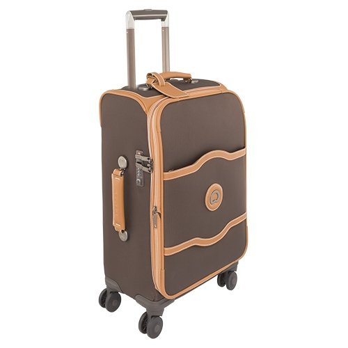 Studio : Delsey Luggage, Inc. Publisher : Delsey Luggage, Inc. Binding : Apparel Product Description The chalet soft collection from delsey Paris is the ultimate in sophisticated French design. Delsey has designed this collection as the soft side equivalent to the iconic chalet hard side collection. This 21 inch carry on spinner luggage is beautifully crafted with faux leather trim and durable 380d polyester with teflon treatment for extra protection against debris and moisture for long lasting use. This case features top, side and bottom carry handles for ease of use when lifting into overhead bins or car trunks. Four silent double spinner wheels and dual locking telescoping handle assure zero weight on your arm during travel. A unique brake system, also found on the chalet hard side collection, is activated with a button and locks the front two wheels of the luggage, preventing the bag from drifting away while allowing travelers to roll the bag on the back two wheels. The exterior of this bag also features an integrated id plate, integrated tsa-accepted lock that allows only tsa agents to open and inspect the bag without damaging the lock, and a large front zippered compartment. The interior is elegantly appointed with two interior bags for shoes or laundry, travel hanger, tie down straps and zippered compartment for personal items. Fits in the overhead compartment of most domestic airlines. Worldwide limited 10 year warranty. 0