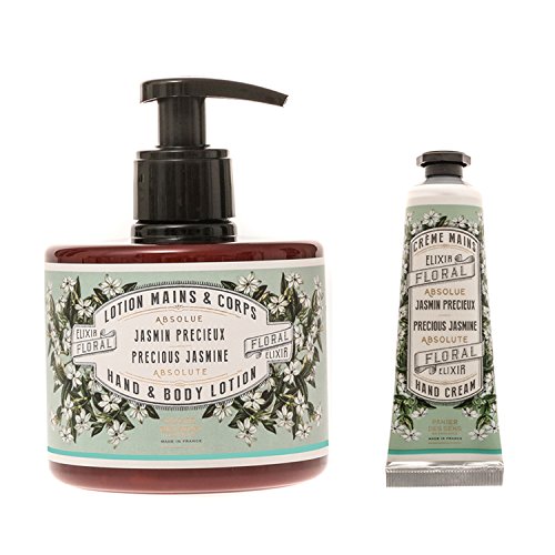 - Two item set that includes one 10.1-ounce Panier Des Sens Hand & Body Lotion and one 1-ounce Hand Cream with natural essential oils from Provence in "Precious Jasmine" scent.