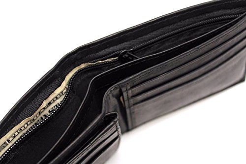-. Binding : Apparel -. Brand : Juzar Tapal Collection -. Department : mens -. Feature : 7 Card Slots ( One Side Slips ) / 2 Window ID left flips up / 1 Center Zip Pocket / 2 Bill Slot / 1 Zip Bill Slot -. Model : JTC-5156Z -. ProductGroup : Apparel -. ProductTypeName : ACCESSORY -. Size : Medium -. Title : Cow Leather Men's Black Bi-fold Wallet Zip Pocket (JTC-5156Z)