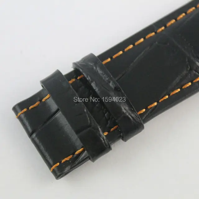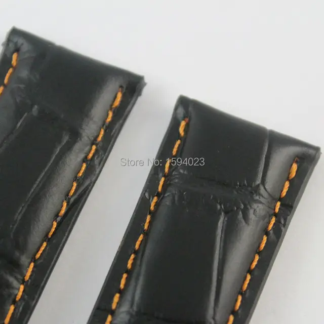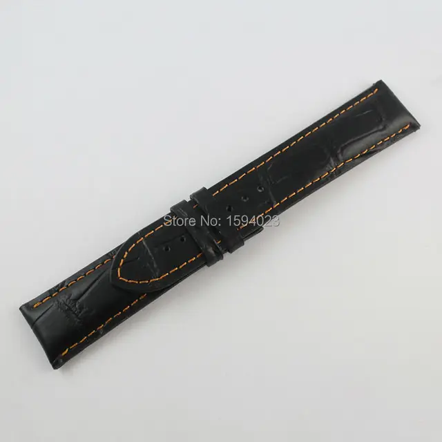 22 미리메터 M005 악어 악어 곡물 가죽 손목 시계 스트랩 남성 돈 블랙 오렌지 라인 정품 가죽 시계 밴드 스트랩