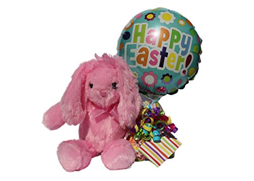 - Bunny Rabbit presents name brand candy ribbon curls topped with 7 inch Happy Easter balloon