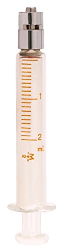 TRUTH 01-05-02-05 Borosilicate Glass Reusable Syringe with Metal Luer Lock, 2 mL Capacity, 0.2 mL Graduation