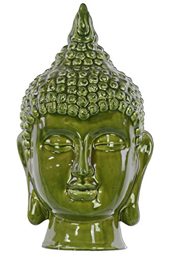Urban Trends Ceramic Buddha Head Decor, Gloss Olive Drab