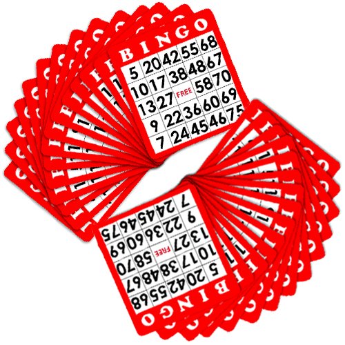 100 Red Bingo Cards with Unique Numbers by Royal Bingo Supplies