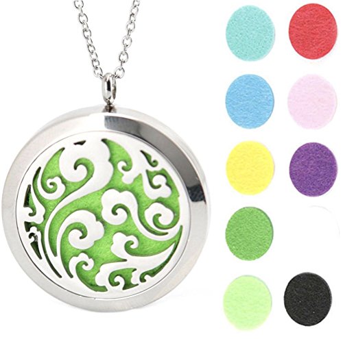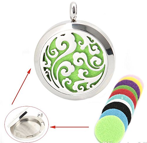 Round Silver Ocean magnet locket Stainless Steel Premium Aromatherapy Essential Oil Diffuser Necklace With 10 Refill Pads
