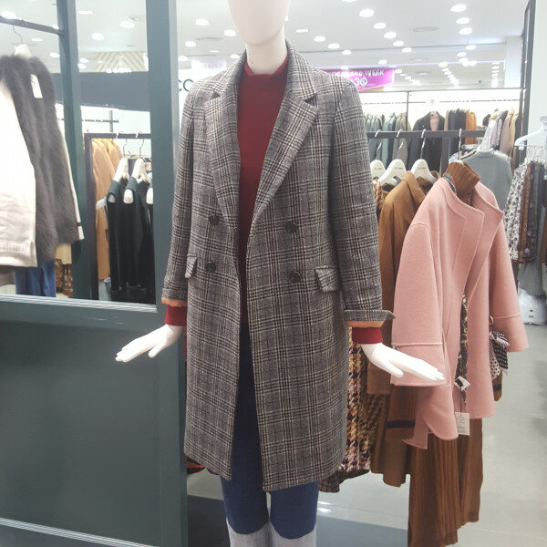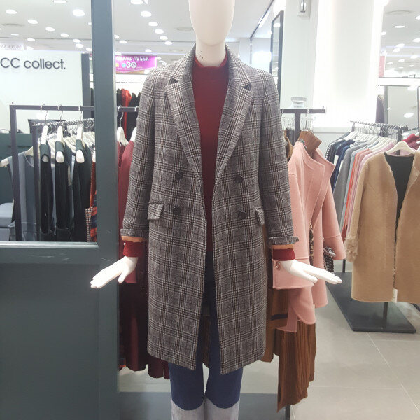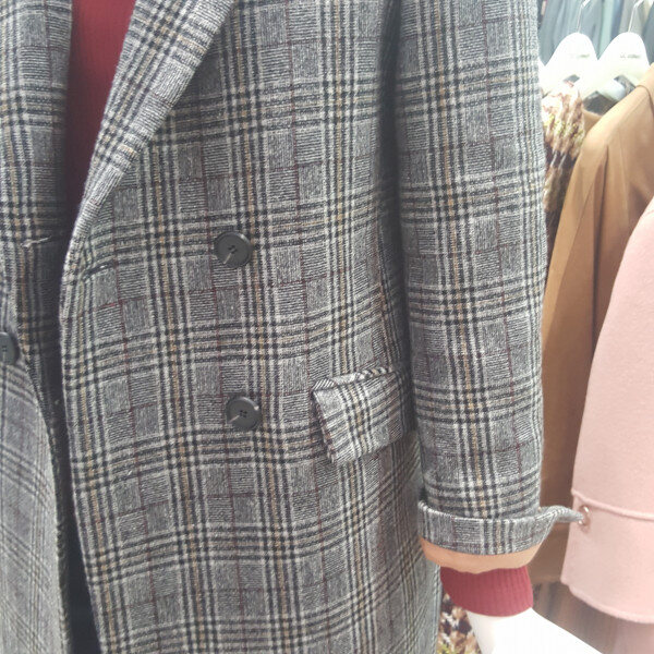 체크패턴의 투버튼 모직코트예요~세련된 디자인의 멋스러운 롱코트로 슬림하게 떨어져요~
