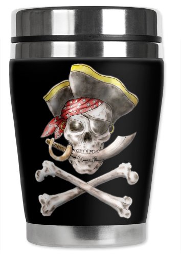Mugzie Pirate "Mini" Travel Mug with Insulated Wetsuit Cover, 12 oz, Black
