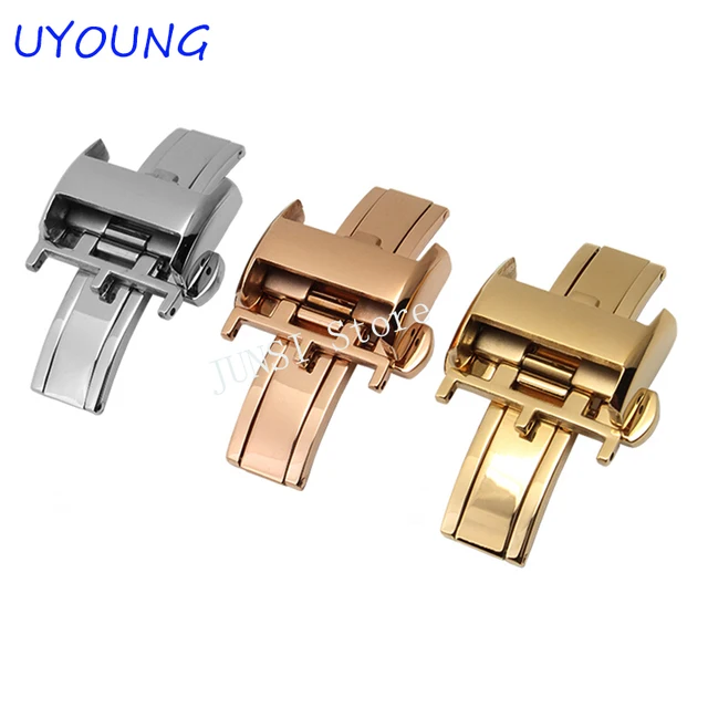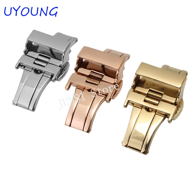 Uyoung 손목 브랜드 특별 테이블 버클 12 미리메터 14 미리메터 16 미리메터 18 미리메터 20 미리메터 블랙 실버 솔리드 스테인레스 스틸 접이식 버클