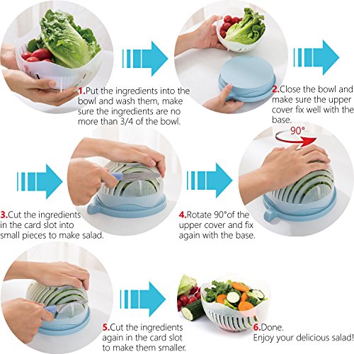 Exeblue Salad Cutter Bowl, Healthy & Fresh Salad in 60 Seconds We know what you really need when you are busy cooking and that is why we tried to combine it in one product, thus make it convenient to use.