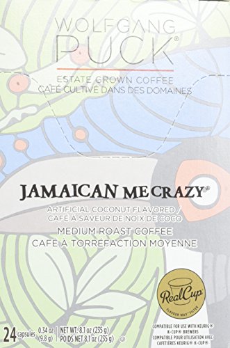 Discover sun-drenched beaches, warm tropical breezes, and a rich culture Sounds nice, doesn't it? Now to enjoy a little Jamaica in your cup, try Wolfgang Puck's Jamaica Me Crazy blend, infused with rich coconut and an island twist; Whether you need a morning pick-me-up, or a quick escape to the islands, a delicious cup of Wolfgang Puck Jamaica Me Crazy is the perfect companion K-cups are compatible with all Keurig K-Cup brewers, and are also compatible with the new Keurig 2.0
