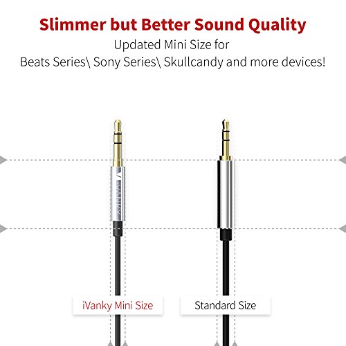 Slimmer cable: The wire of iVanky aux cord is thinner than normal products but this is ultimately better because of high quality materials. The thickness of it does not compromise its strength and adds a great deal of flexibility.