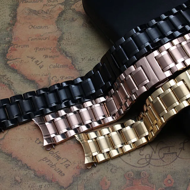 상품 내용 2016 새로운 패션 4 색상 교체 스테인레스 스틸 솔리드 링크 시계 밴드 스트랩 팔찌 곡선 엔드 18 20 22 미리메터 손목