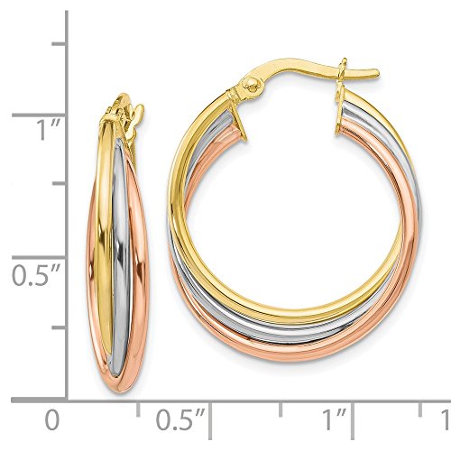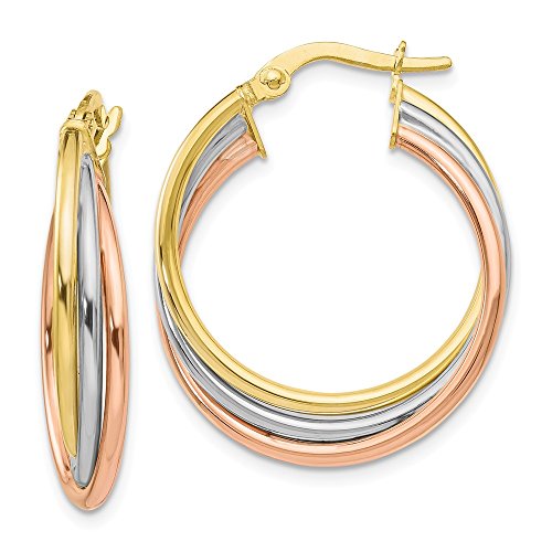 Solid 10k Gold Tri-color Polished and Textured Twisted Hoop Earrings (18mm x 41.3mm)