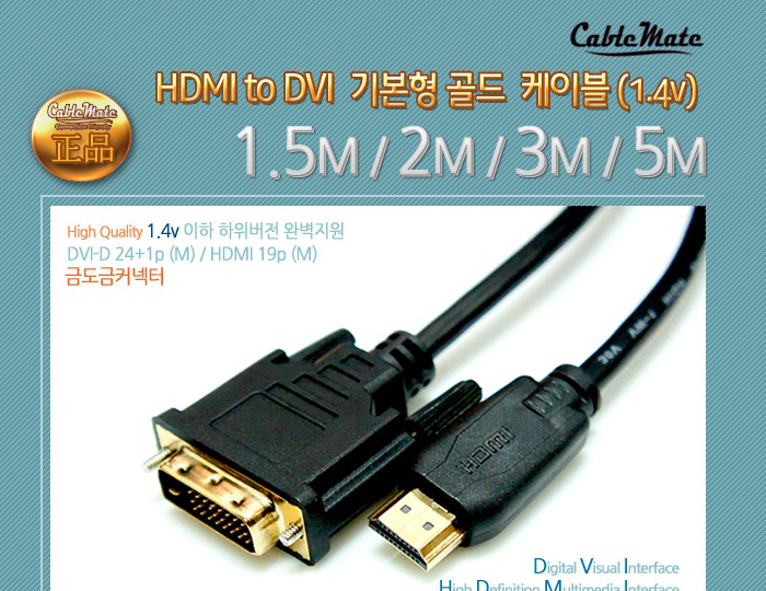 CableMate HDMI to DVI Gold Cable 5M 1.4v