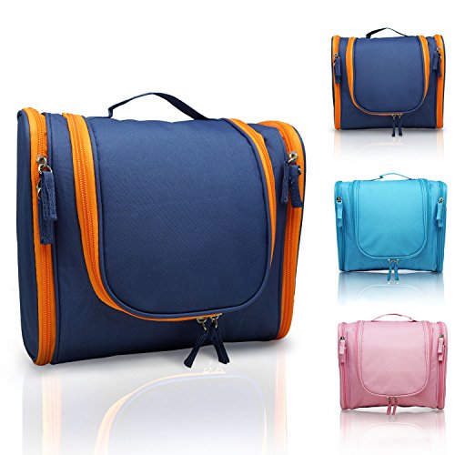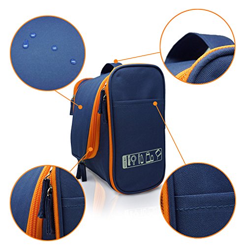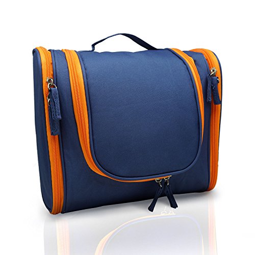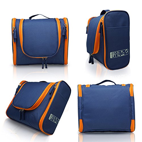 MANUKA Heavy Duty Premium Large Waterproof Hanging Toiletry Bag - Shaving Kit Organizer For Men and Cosmetics Makeup Bag For Women Orange Blue