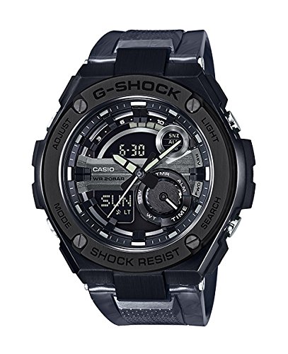 Brand, Seller, or Collection Name:Casio Model number:GST-210M-1A Part Number:GST-210M-1A Item Shape:Round Dial window material type:Mineral Display Type:Analog and digital Clasp:Buckle Case material:Resin Case diameter:5.10 centimeters Case Thickness:16.10 Band Material:Resin Band width:25 millimeters Band Color:Black Dial color:Black Bezel material:Stainless steel Calendar:Date Special features:World time Movement:Quartz Water resistant depth:200 Meters