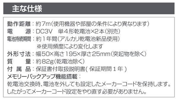 fk094igrjs買ってすぐに使えて操作も簡単な学習リモコンですよく使う機能を学習ボタン登録できます サイズ 個装サイズ:24×10×3cm 重量 個装重量:300g 製造国 中国 簡単操作の学習リモコン 買ってすぐに使えて操作も簡単な学習リモコンですよく使う機能を学習ボタン登録できます