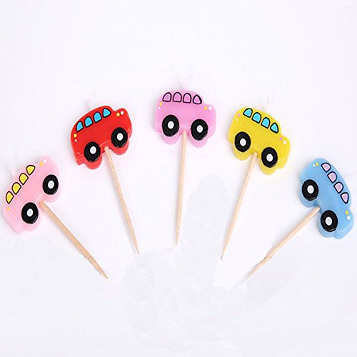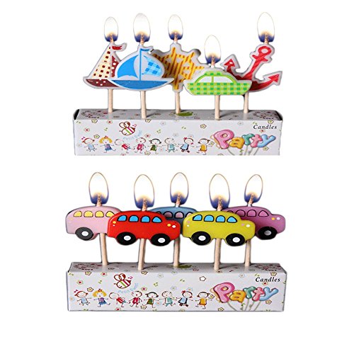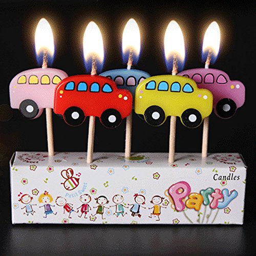 Creative Handmade Cartoon Candles Smokeless Lovely Candles Cake Decoration 2 Different Pattern 10pcs in a Pack - 5 Pcs Vessel and 5Pcs Bus