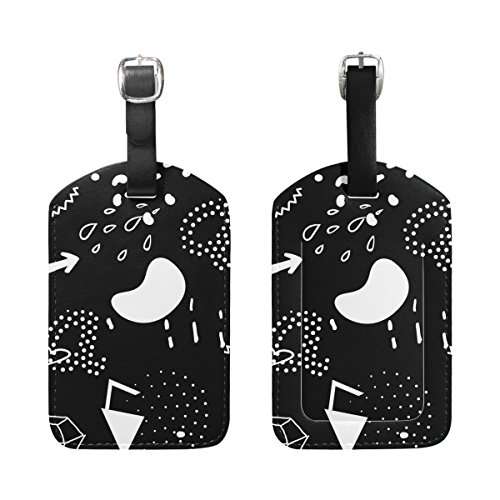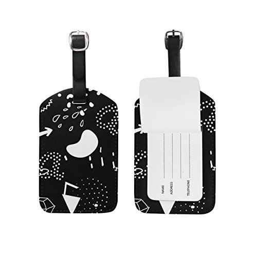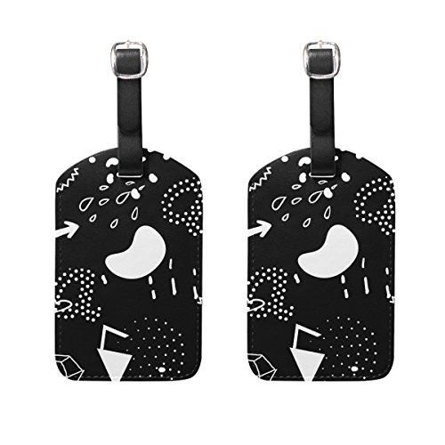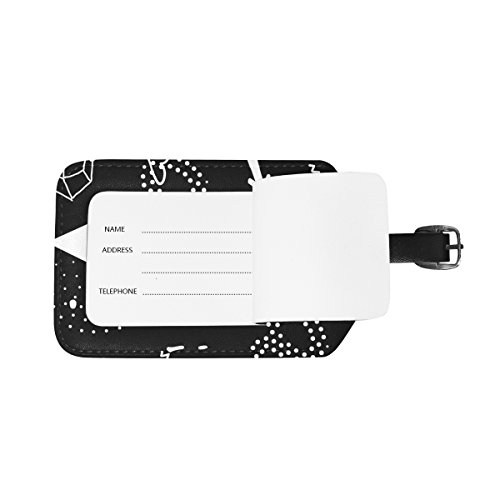 (AHOMY)/Accessories/Luggage, Bags Travel/DIRECT FROM USA/AHOMY Black And White Ethnic Geometric Dots Leather Luggage Tags Travel Suitcase Labels Busines...