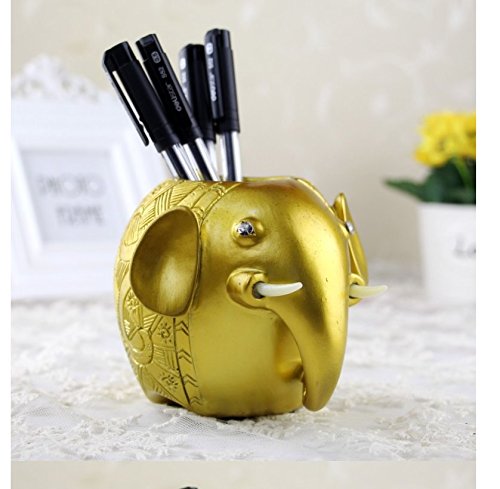 Yephets Resin Carving Elephant Pencil Holder Fashion Creative Desk Decoration,cute Pencil Holder for Office,Amazing Gift (Gold)