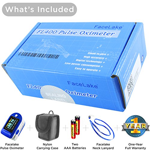 -. Title : FaceLake FL-350 Finger Pulse Oximeter, with Carrying Case, Lanyard & Batteries, Blue