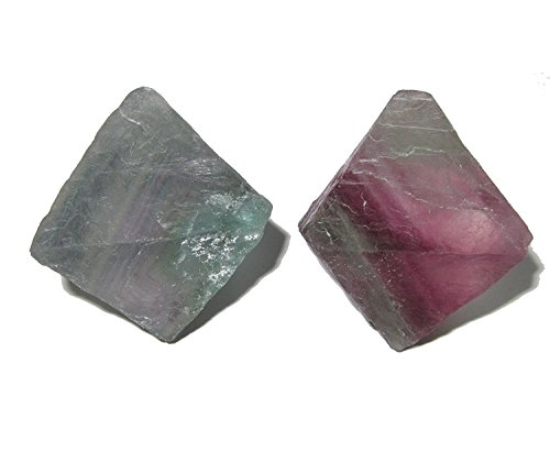 This is set of 2 solid and natural fluorite crystals. You receive a pair of rugged and raw 8-sided diamond shaped stones. These pieces are high quality and of exceptional color, boasting clear light green and purple hues with subtle stripes within. One of a kind holistic set. Receive the exact stone pictured when you order from Satin Crystals!
