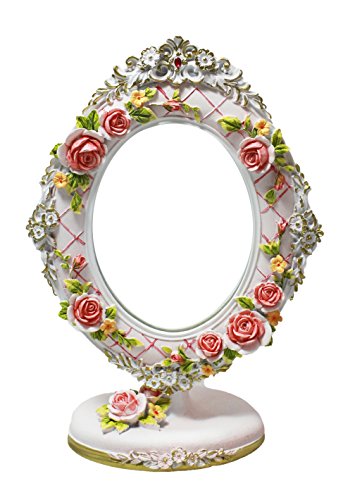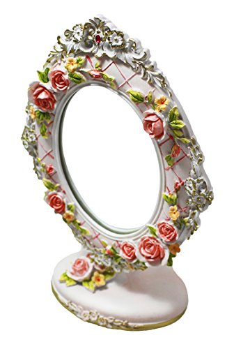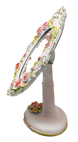 Cute Pink Floral Desktop Tabletop Countertop Vanity Makeup Mirror - Embossed Roses│Valentine's For Her
