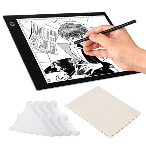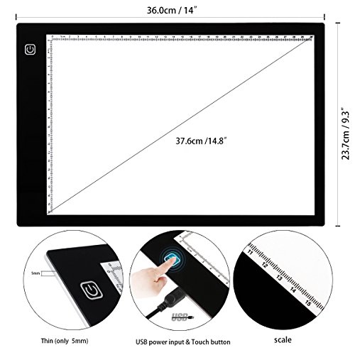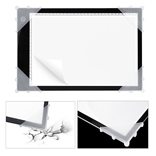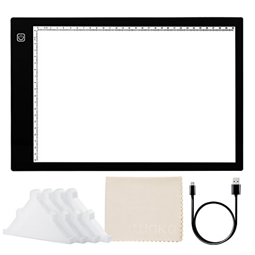 UPGRADED ACCESSORIES: 4pcs plastic safety corner guards which can be used to fix papers when drawing and to protect the tracing light box from bumping all around. Longer USB cable (6.56ft/200cm) is much more convenient for you to use the light pad anywhere you like by plug into any USB port like computer, power bank or USB wall charger. An extra premium microfiber cleaning cloth to keep the drawing light pad from stains and dirt.