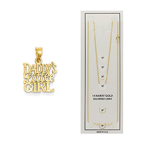 14k Yellow Gold Daddy's Little Girl Charm on a 14K Yellow Gold Carded Rope Chain Necklace, 16". The Pendant on this Necklace is on an 18 inch Rope Style 14k Yellow Gold Chain and is Packaged in a Satin Jewelry Pouch.Feature