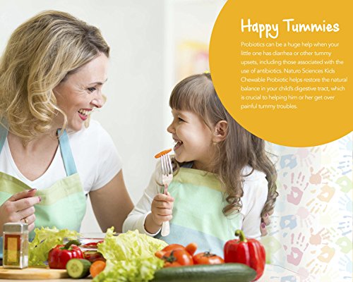 HAPPY TUMMIES: Probiotics can be a huge help when your little one has diarrhea or other tummy upsets, including those associated with the use of antibiotics. Naturo Sciences Kids Chewable Probiotic helps restore the natural balance in your child's digestive tract, which is crucial to helping him or her get over painful tummy troubles.