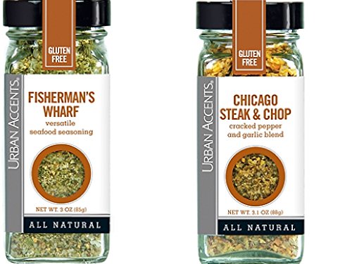 -. Title : Urban Accents Fisherman’s Wharf Versatile Seafood Seasoning, 3 Ounces, and Urban Accents Chicago Steak & Chop Cracked Pepper and Garlic Seasoning, 3.1 Ounces