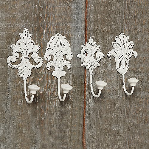 - Bring French country style charm and warmth to your space with our relaxed and welcoming Chateaux Fleur De Lis Wall Hooks, Set of 4. Featuring iconic curled tops, each hook has a porcealin cap on the end. This practical and eye catching set is perfect for many spaces in the house including baths, entries, hallways and foyers.